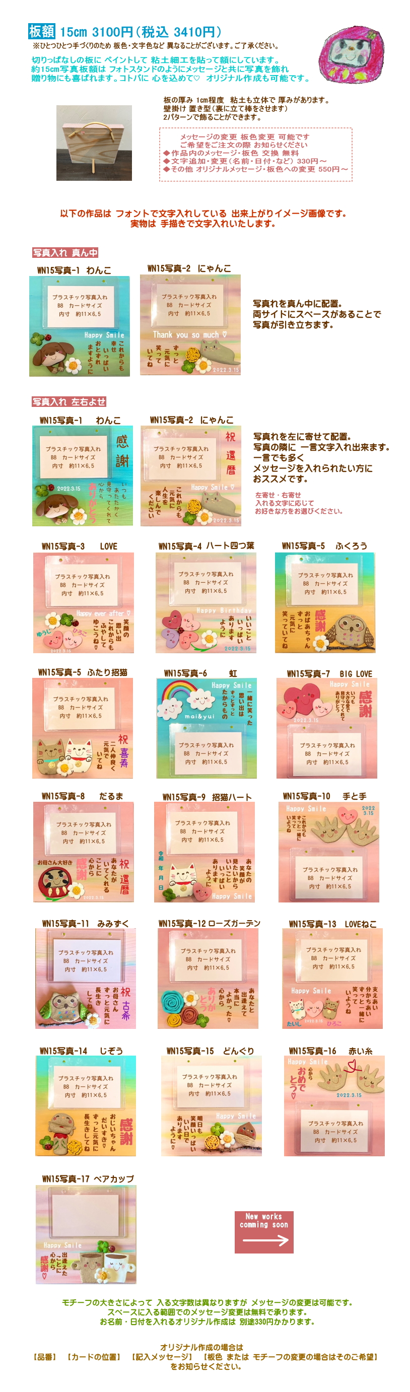 ひとつひとつ手作りのため、板の色や文字の色など写真と多少異なることもございますので、ご了承下さい。